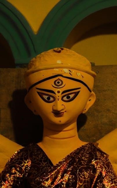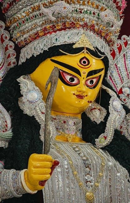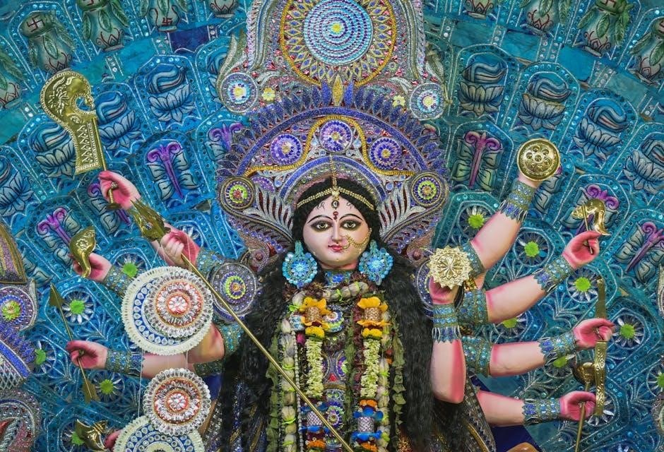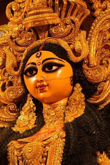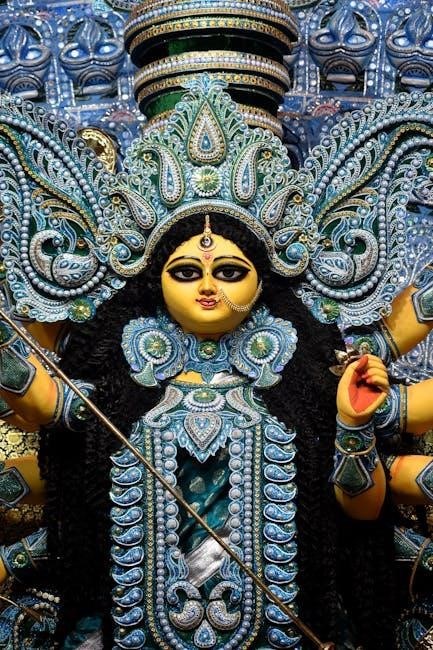 The Durga Kavach PDF derives its power directly from Maa Durga’s divine aura. Reciting the Kavach is believed to invoke her blessings, creating a shield against negativity. Understanding her importance enhances the devotional experience when using the PDF for spiritual practice.